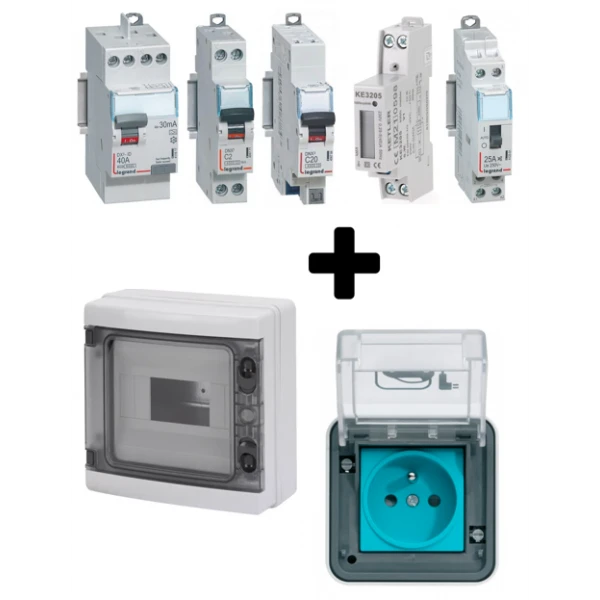 – 1 Tableau électrique 8 modules IP65 composé en Legrand