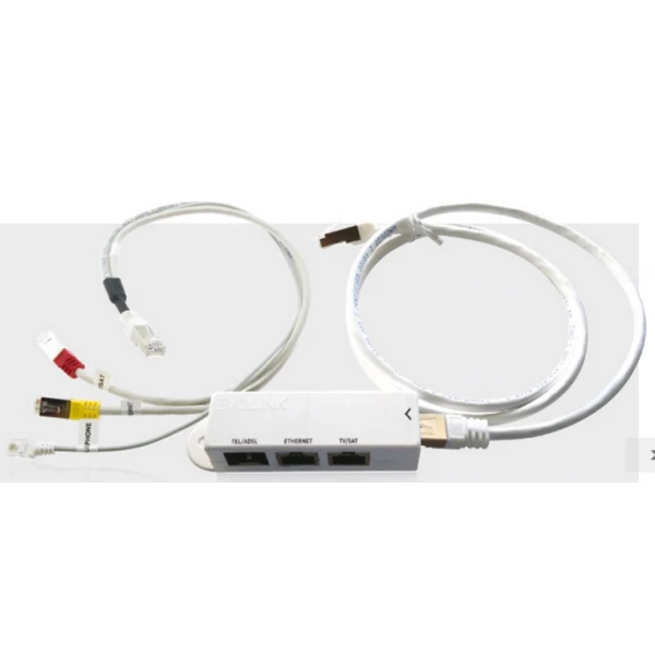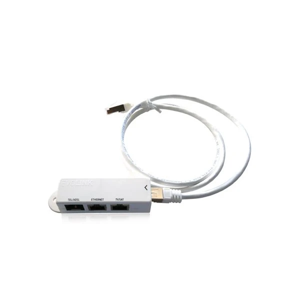 Le kit Triple Play permet de transmettre la totalité des signaux Triple Play (téléphone + Internet + télévision terrestre et satellite) sur une même prise RJ45 avec un câble unique à paires torsadées.
