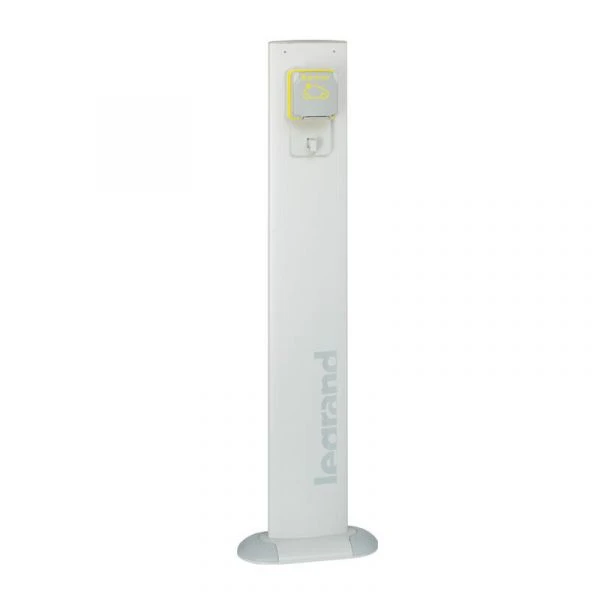 - Pied en métal (avec peinture anti-corrosion) équipé d’un socle de prise renforcée 2P+T à éclips pour fiche 2P+T (mode 2) et d’une patère de suspension pour le boîtier de contrôle du cordon de recharge