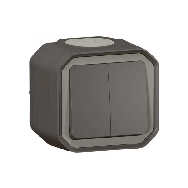 Commande double étanche pour réaliser 3 fonctions Plexo IP55 IK08 livrée complète pour fixation saillie – anthracite