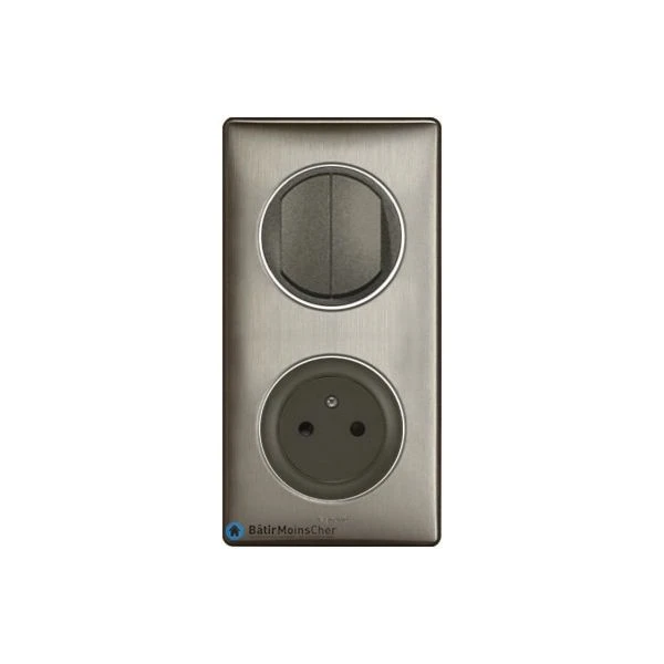 Avec enjoliveur graphite et plaque Tungstène sur support pour fixation à vis. Il faut prévoir une boite d’encastrement 2 postes entraxe 71mm pour ce produit.