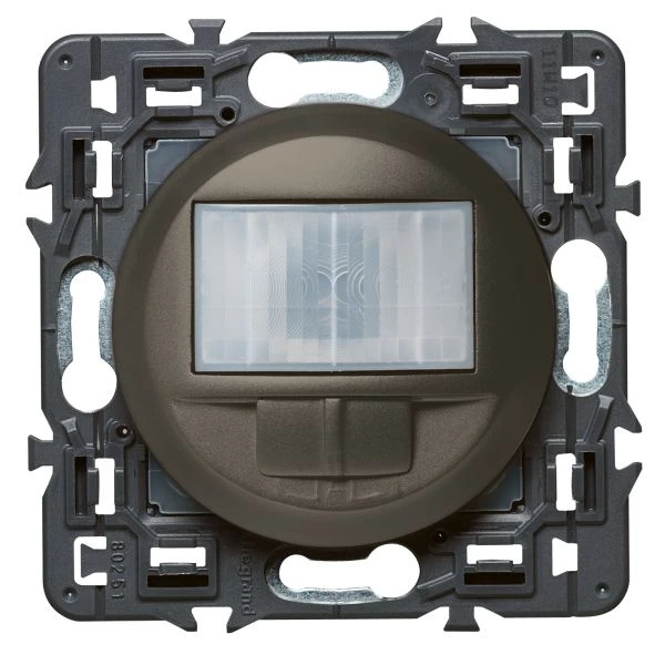 Ecodétecteur avec dérogation (marche/arrêt) de la gamme Céliane de chez Legrand graphite et livré sans la plaque, vous recevez le matériel à assembler par vos soins.