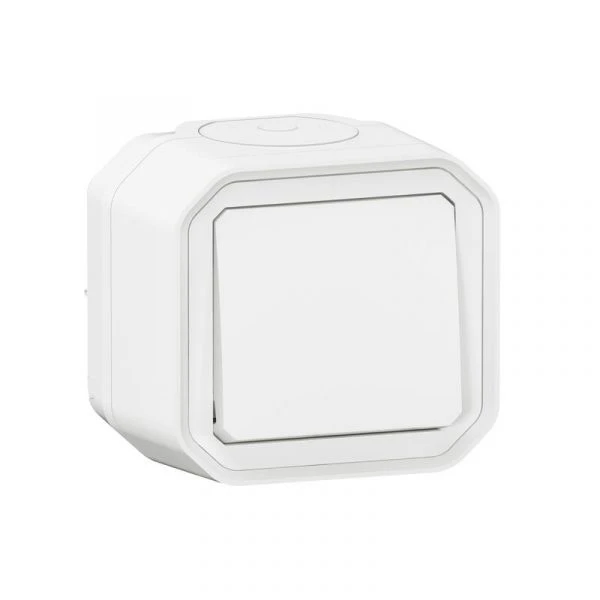 Poussoir NO étanche Plexo 10A IP55 IK08 livré complet pour fixation saillie – blanc