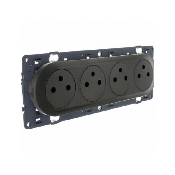 Prise quadruple 4 x 2 pôles + la terre précâblée Céliane Legrand graphite sans la plaque, le matériel est à assembler par vos soins.
