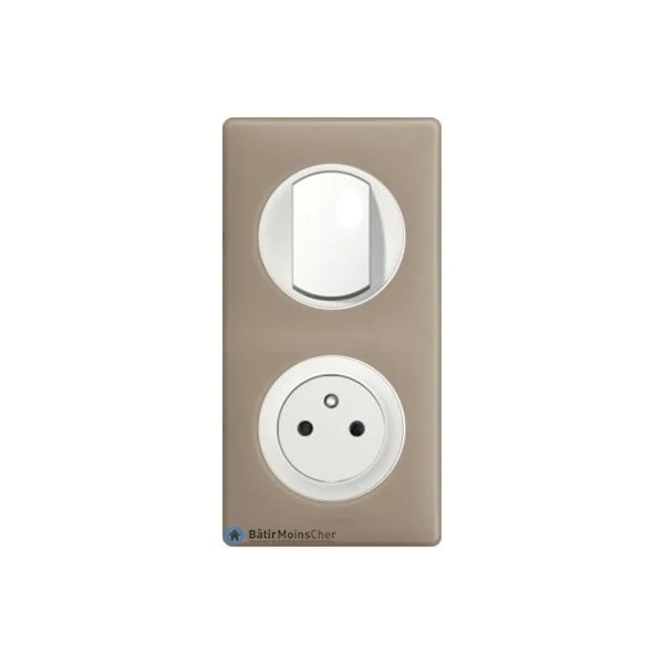 Avec enjoliveur blanc et plaque Grès sur support 2 postes entraxe 71mm pour fixation à vis.