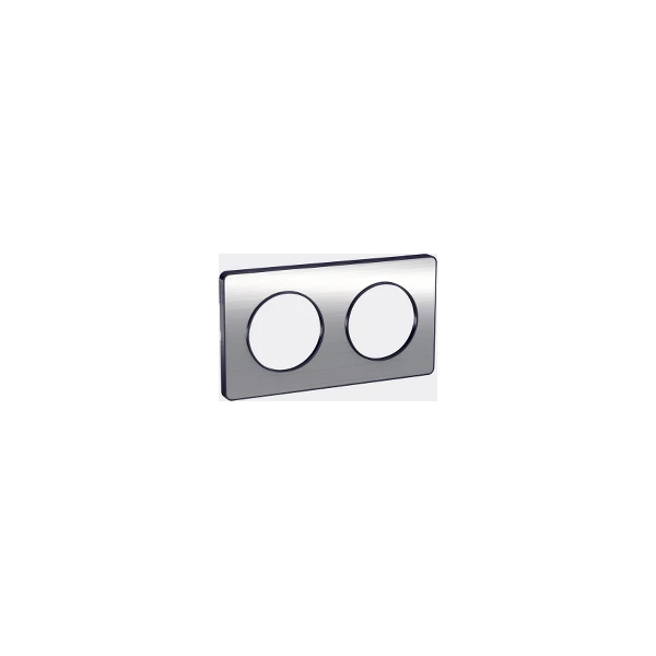 Plaque 2 postes Odace Styl couleur aluminium brossé avec le liseré anthracite.